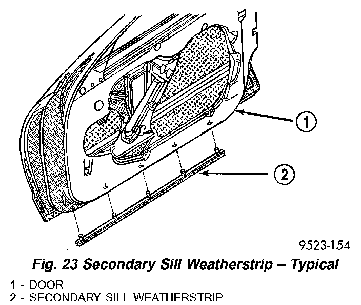 3. Remove secondary sill weatherstrip from vehicle (Fig. 23).