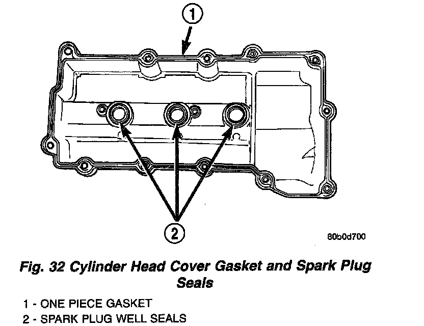 1. Clean cylinder head cover and both sealing surfaces. Inspect and replace gaskets as necessary (Fig. 32).