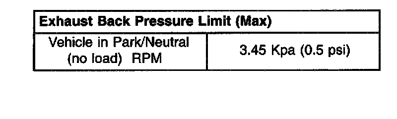7. If pressure exceeds maximum limits, inspect exhaust system for restricted component. For further catalytic converter inspection procedures, Refer to CATALYTIC CONVERTER - INSPECTION. Replace component(s) as necessary.