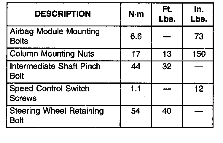 SPECIFICATIONSCOLUMN FASTENER TORQUE