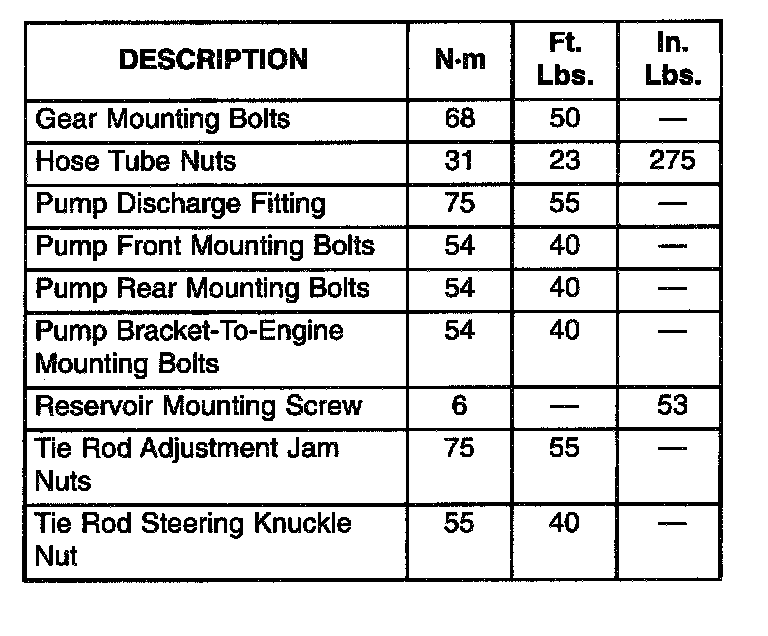 POWER STEERING FASTENER TORQUE