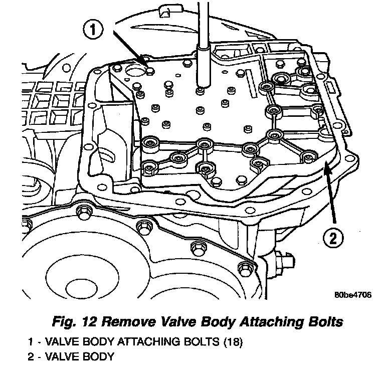 8. Remove valve body-to-case bolts (Fig. 12).