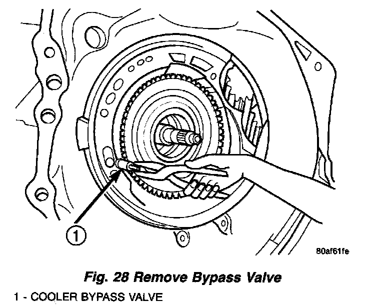 20. Remove cooler bypass valve (Fig. 28).