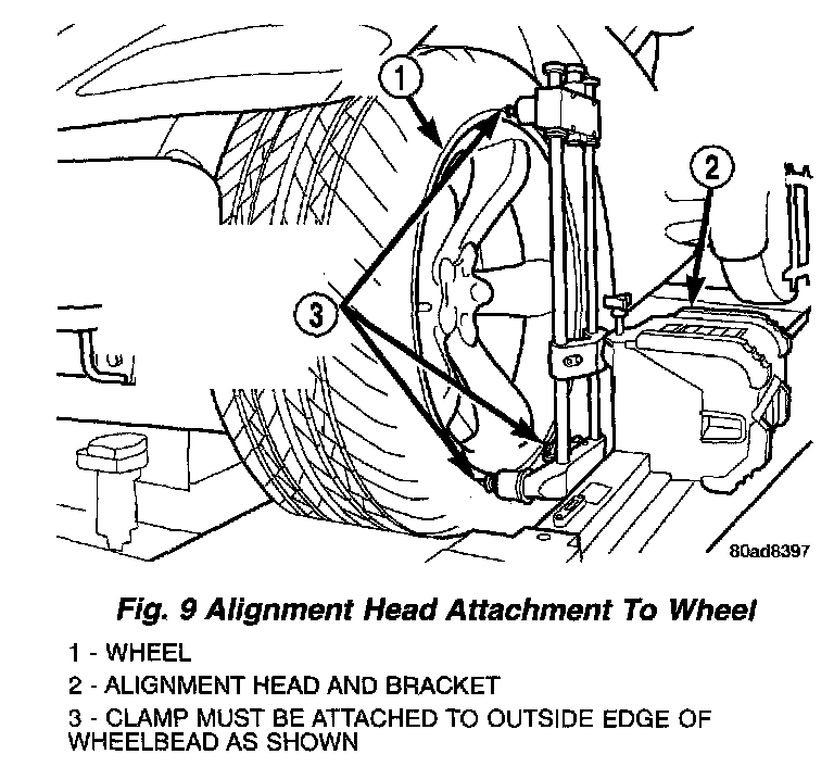 NOTE: This vehicle is equipped with flangeless style wheels, thus any alignment equipment used must be capable of attachment to the outside edge of the wheel bead.