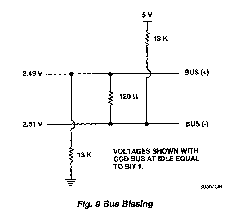 Bus Bias Level Too High - Either or both of the bus wire potentials are significantly above their normal 2.5 volts.