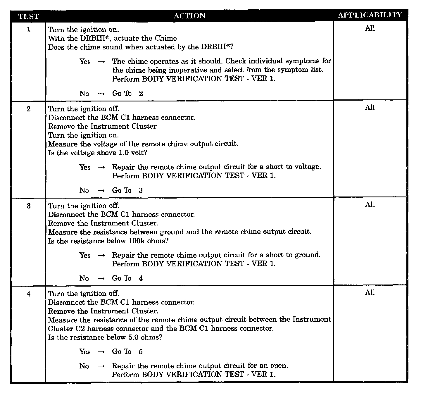 CHIME INOPERATIVE AT ALL TIMES