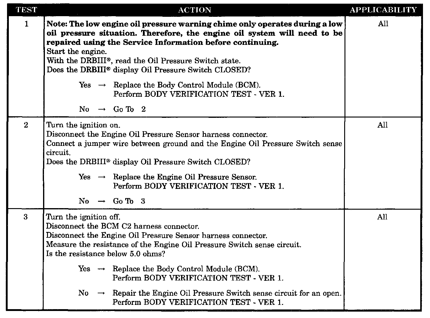 CHIME INOPERATIVE WITH LOW OIL PRESSURE
