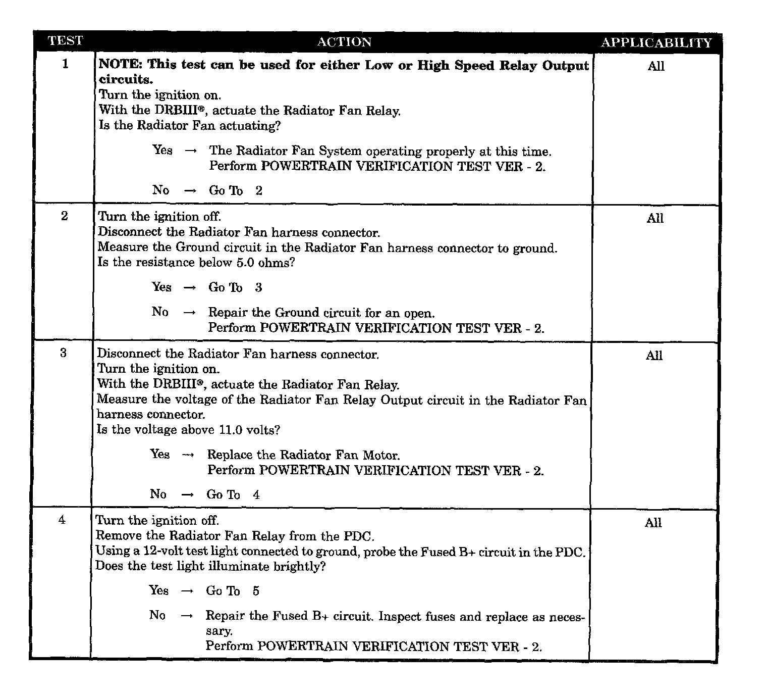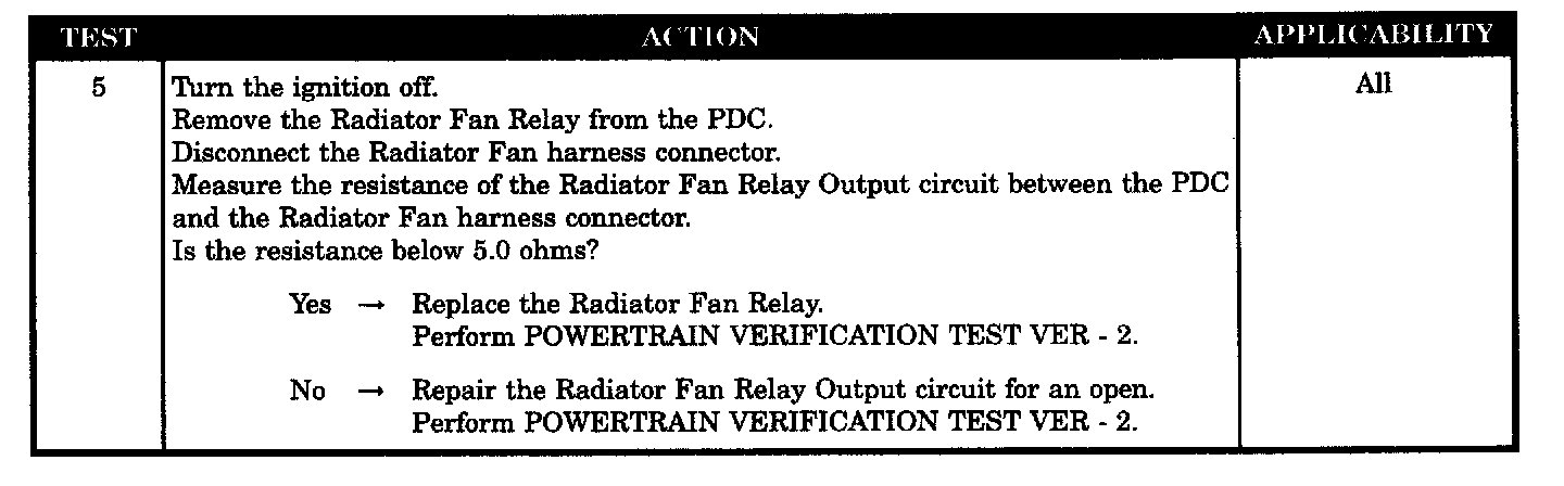 CHECKING RADIATOR FAN RELAY OUTPUT