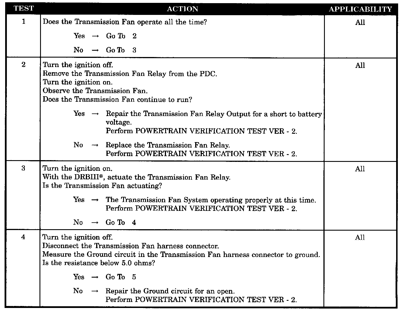 CHECKING TRANSMISSION FAN RELAY OUTPUT