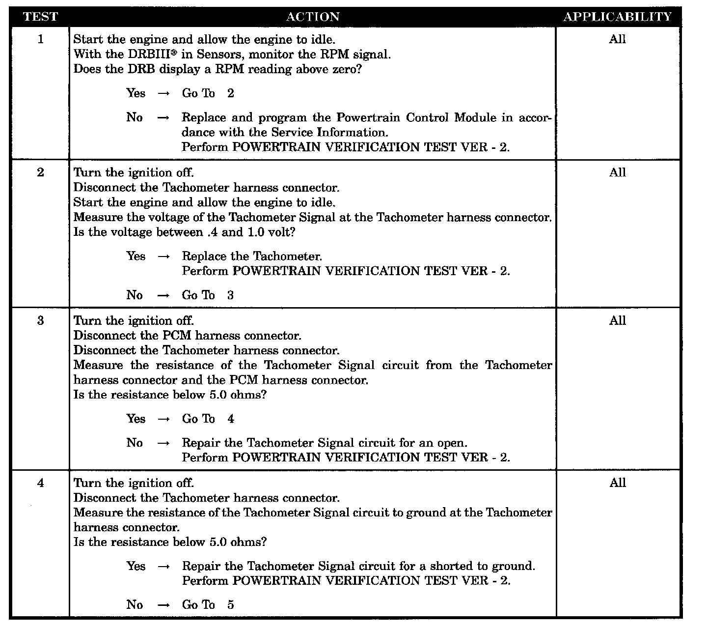 - Tachometer signal circuit shorted