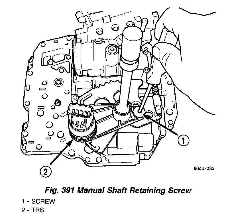 4. Remove manual shaft/TRS retaining screw (Fig. 391).