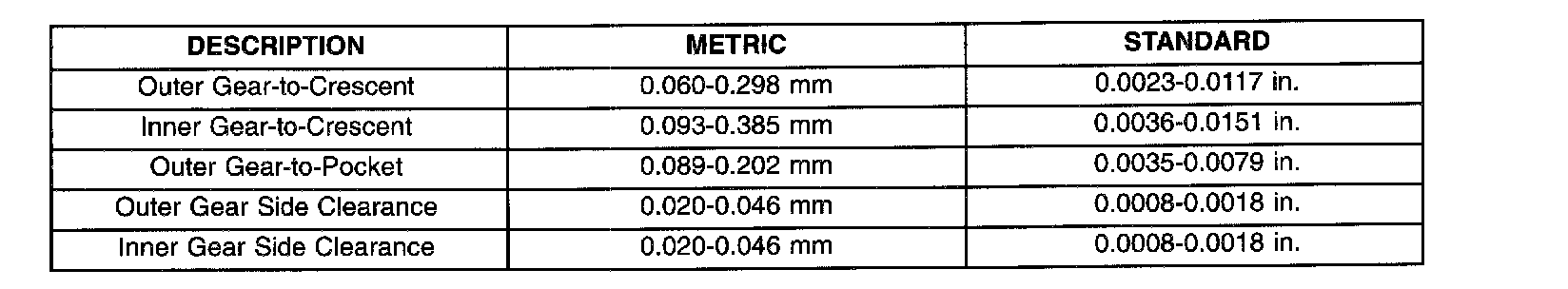 OIL PUMP CLEARANCES