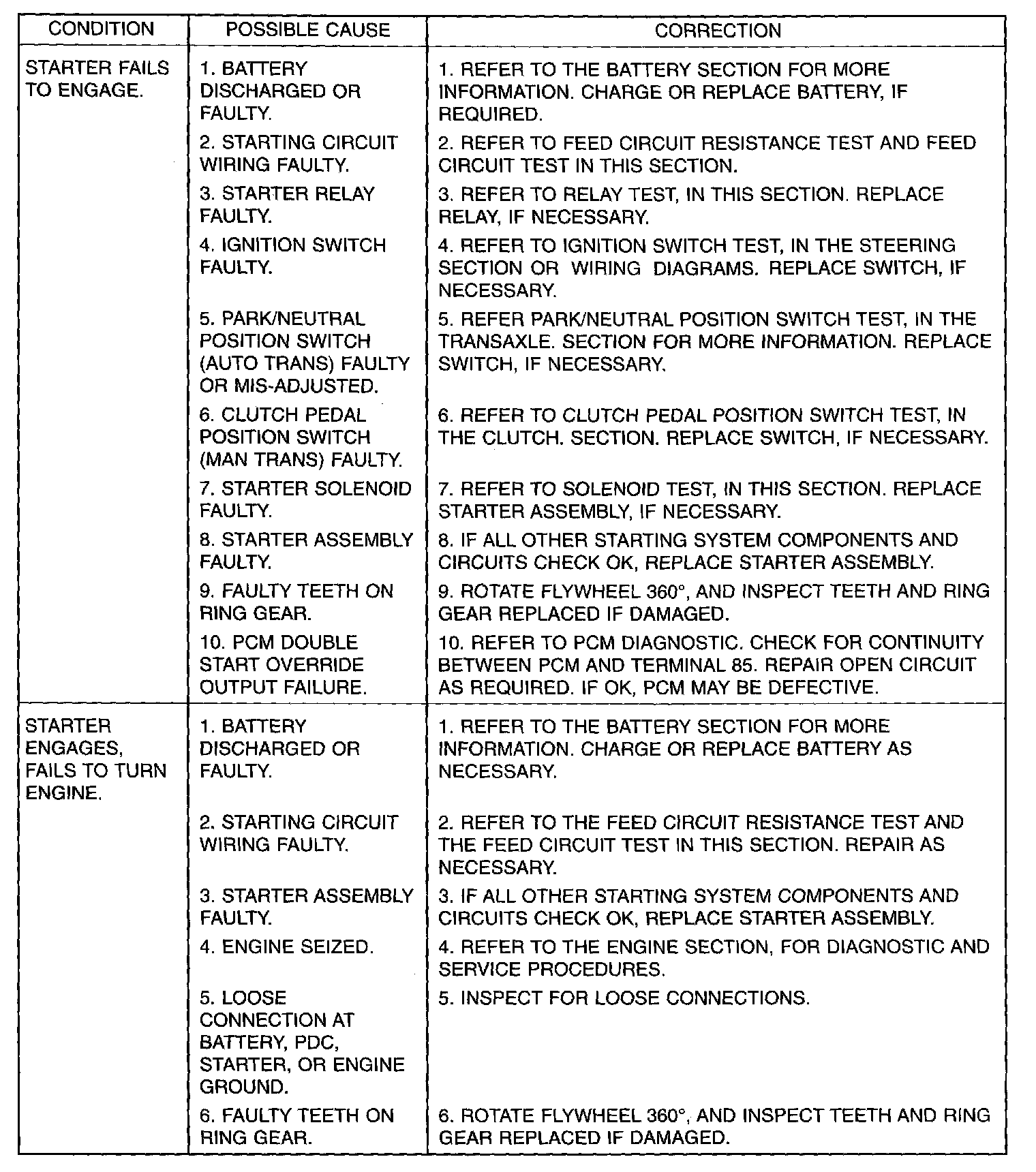 Before removing any unit from the starting system for repair or diagnosis, perform the following inspections: