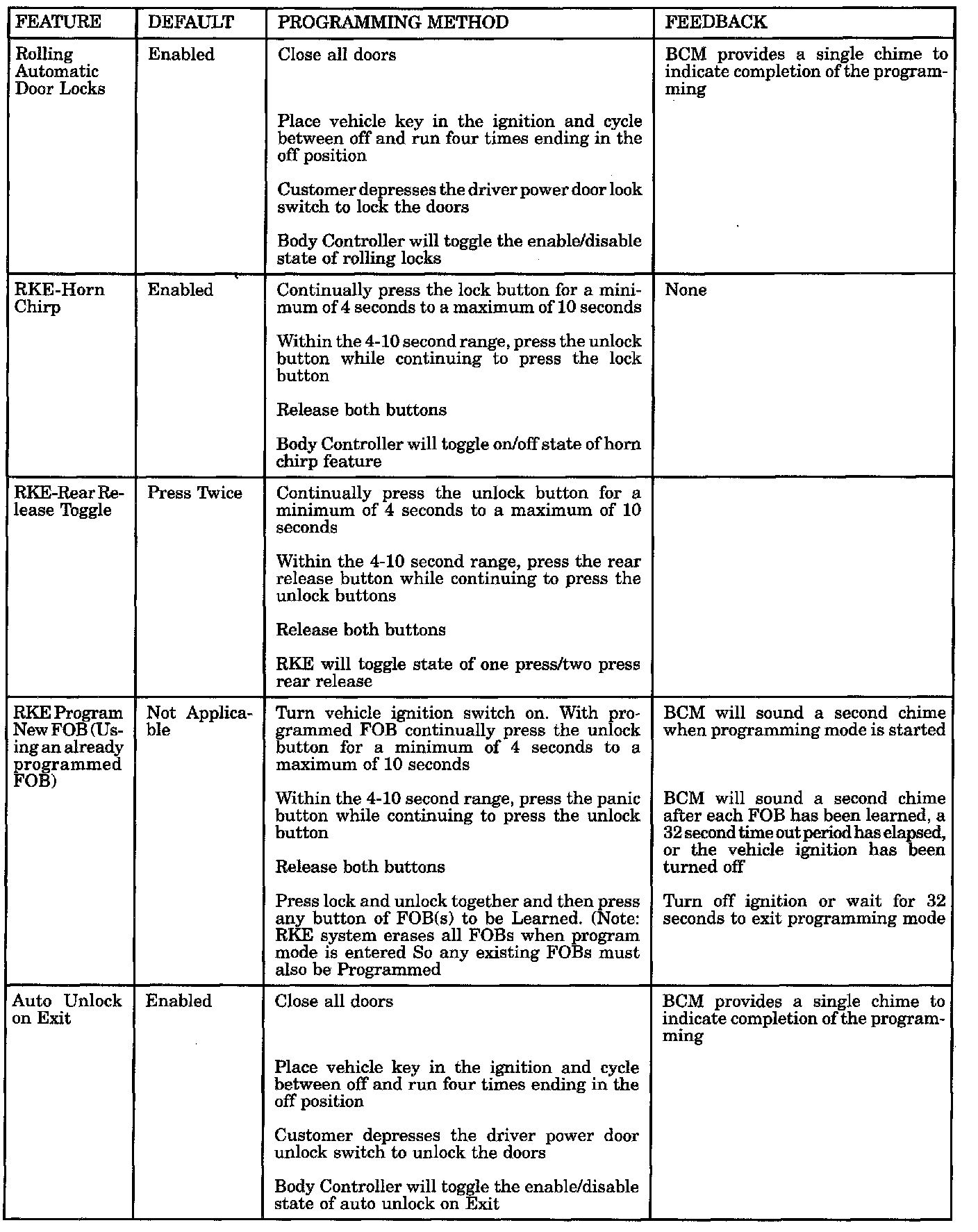 The body control module provides the following features: