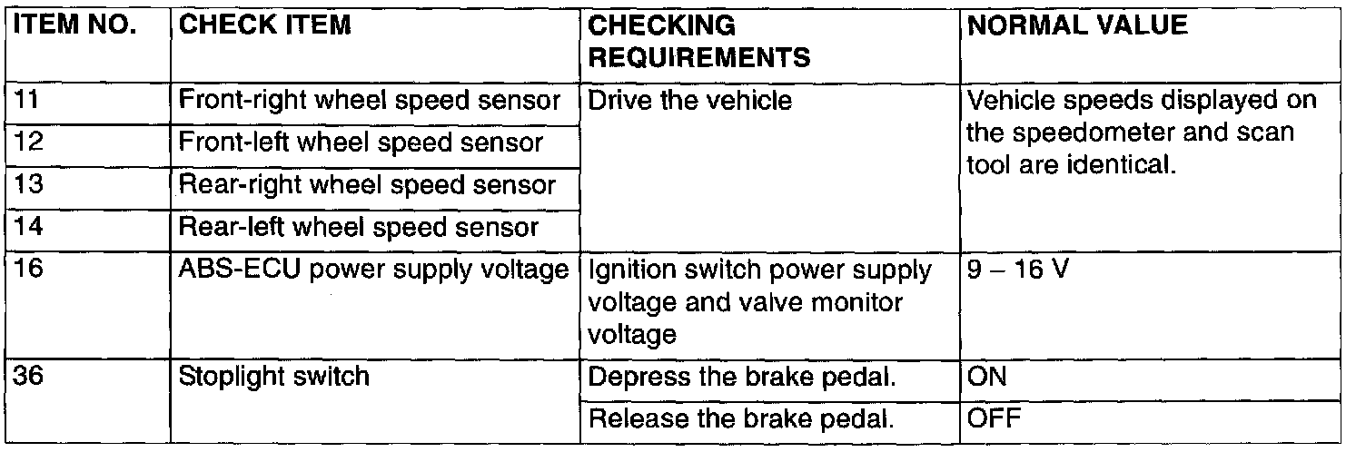 These items can be read by the scan tool from the ABS-ECU input data