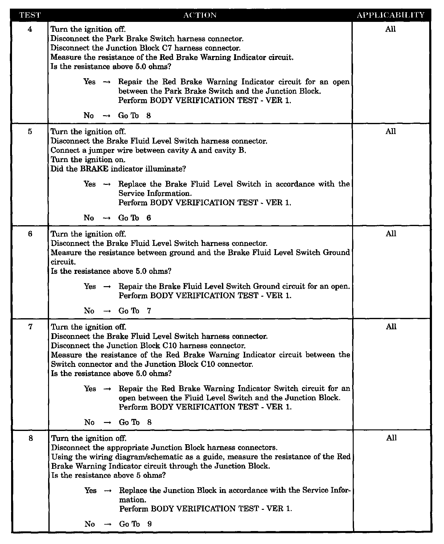 - Red brake warning indicator driver circuit open - MIC to J/block