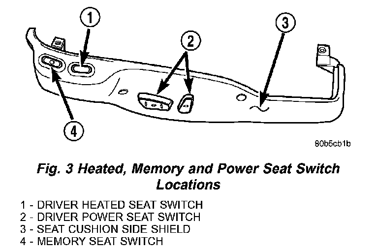 Fig.3 Heated, Memory And Power Seat Switch Locations: