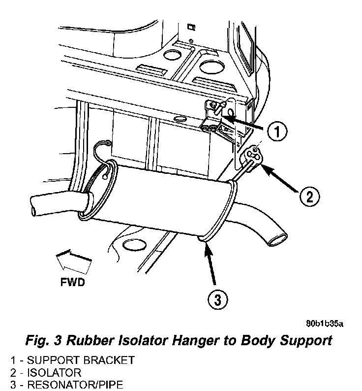 5. Visually inspect the isolators. They should be straight when viewing from front to back of the vehicle. Working from the front of system, align each component to maintain position and proper clearance with underbody parts.