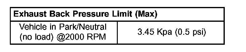 7. If pressure exceeds maximum limits, inspect exhaust system for restricted component. Replace component(s) as necessary.