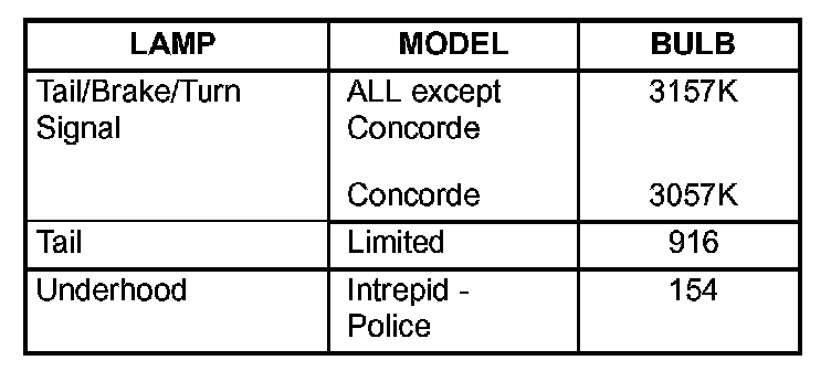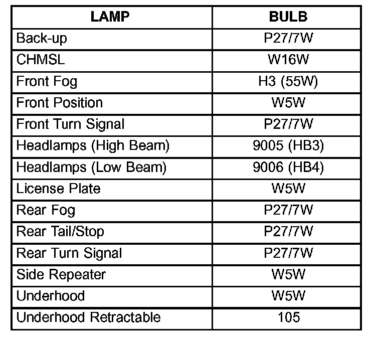 CAUTION : Do not use bulbs other than those listed in the Bulb Application Table. Damage to lamp can result.
