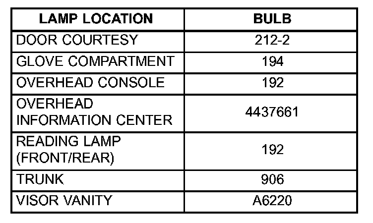 Service procedures for most of the lamps in the following list can be found in Body. Some components have lamps that can only be serviced by an Authorized Service Center (ASC) after the component is removed from the vehicle. Contact local dealer for location of nearest ASC.