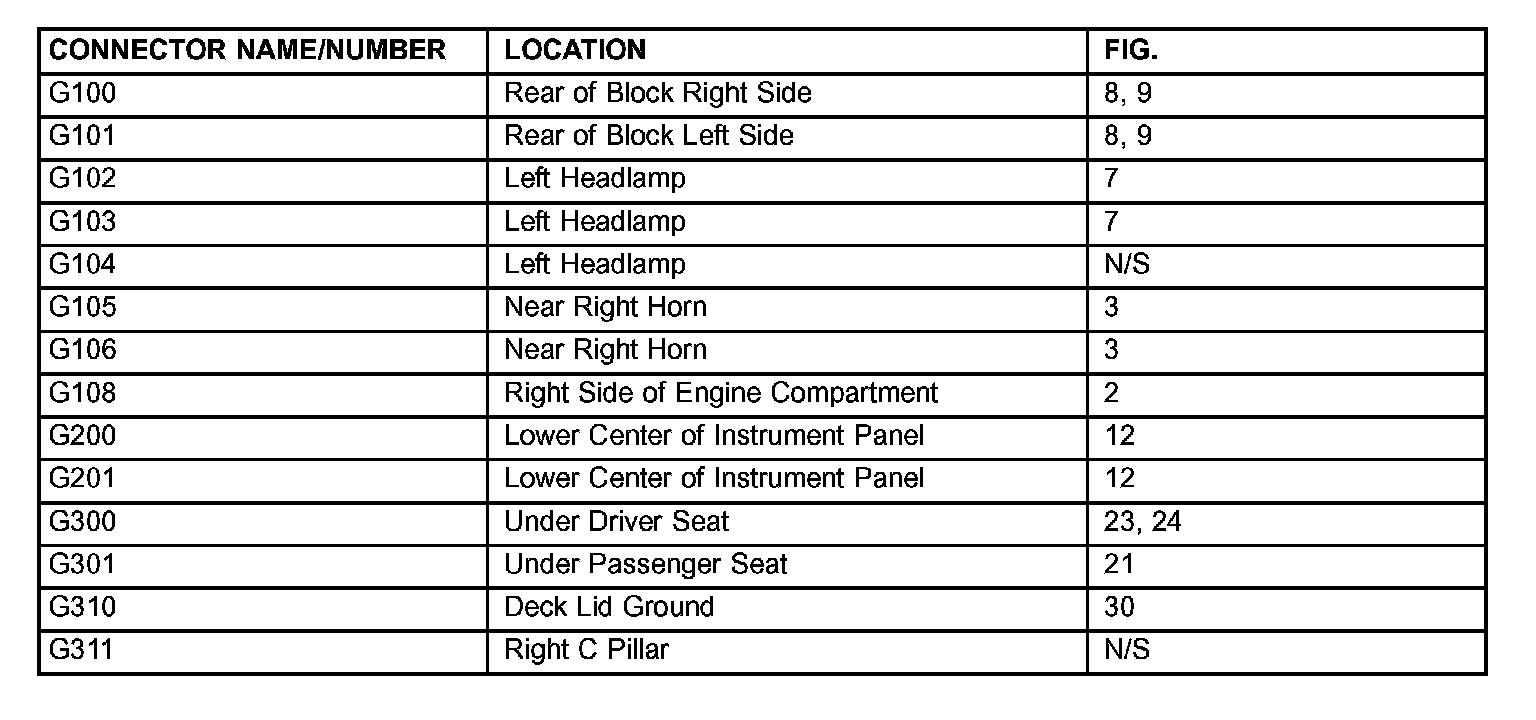 The abbreviation T/O (Take Out) is used in the location column to indicate a point in which the wiring harness branches out to a component.