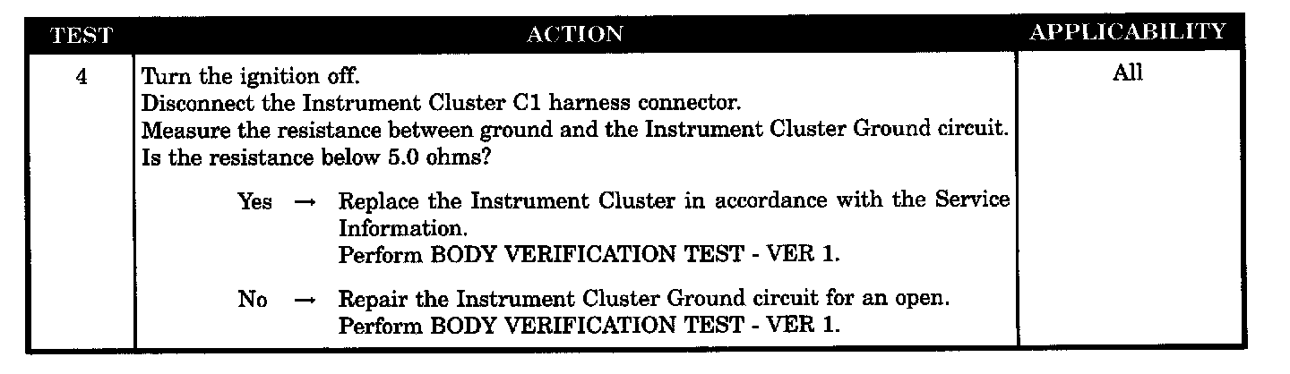 Instrument cluster ground circuit open