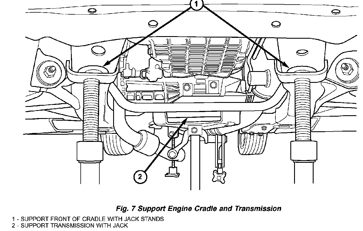 15. Support front of engine cradle on both sides with suitable jack stands.