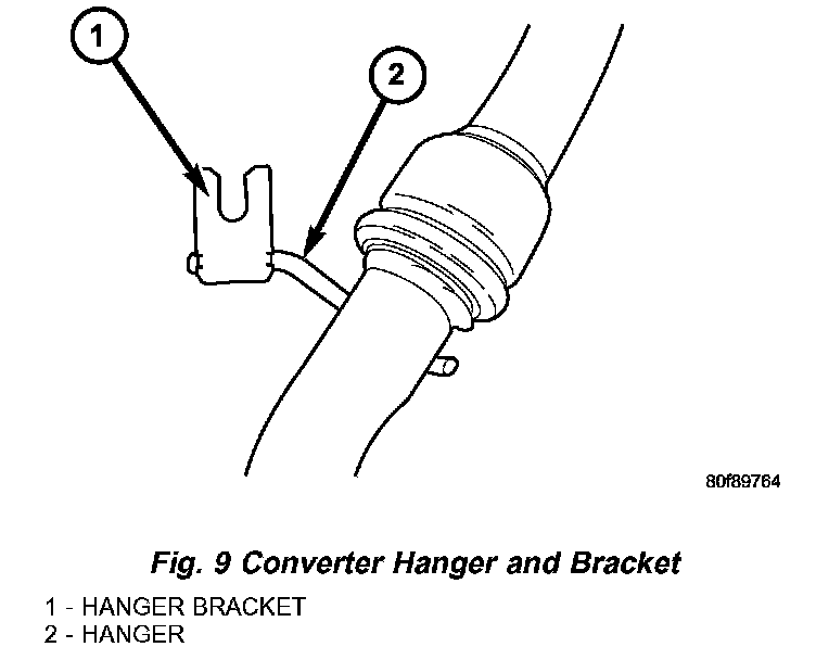 NOTE: To allow enough clearance for catalytic converter installation, remove hanger bracket from hanger.