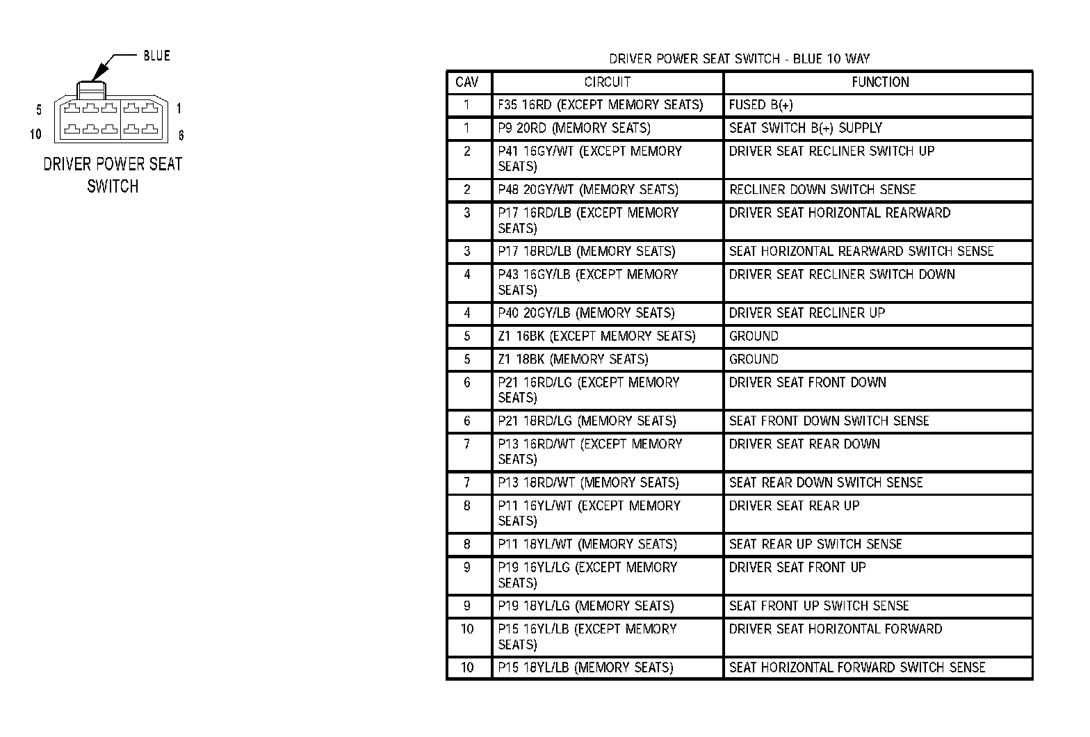 Driver Power Seat Switch:
