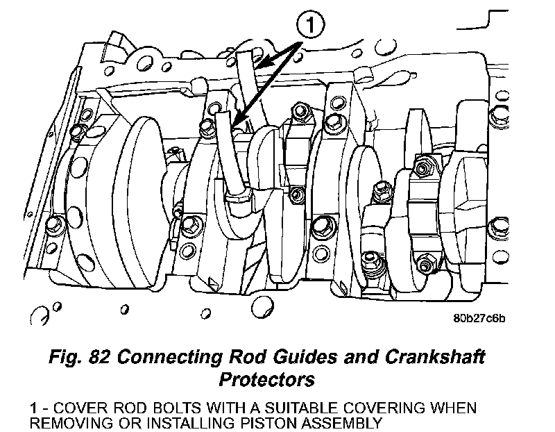 5. Install connecting rod bolt protectors on rod bolts (Fig. 82).