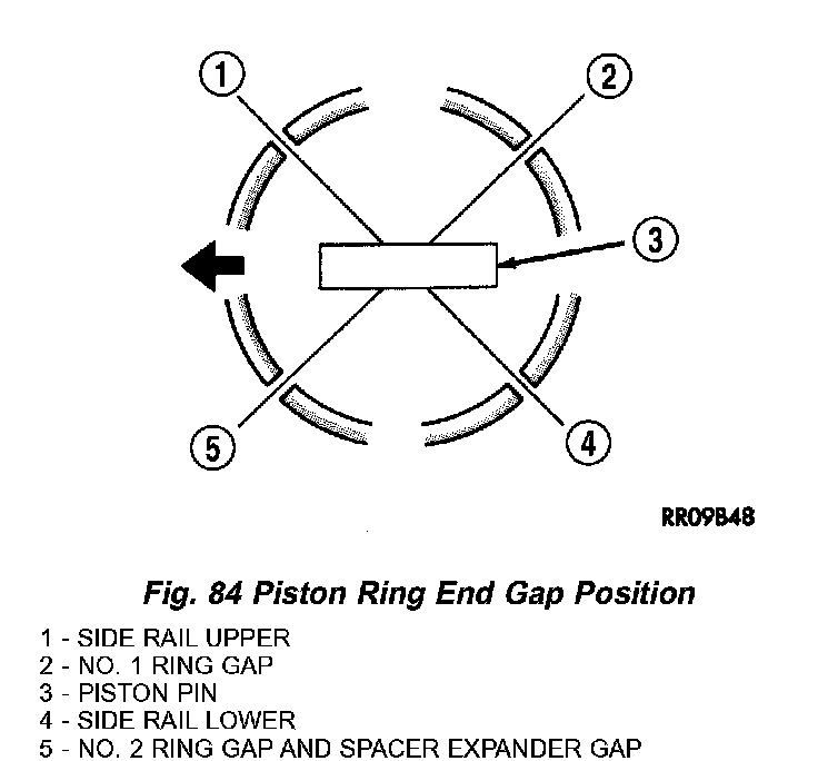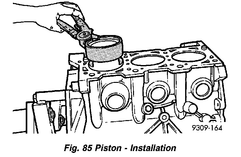 3. Before installing pistons and connecting rod assemblies into the bore, ensure that compression ring gaps are staggered so that neither is in line with oil ring rail gap (Fig. 84).
