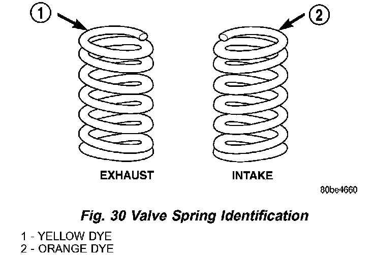 4. Place valve spring (color-coded end facing up (Fig. 30)) and valve retainer into position on spring seat (Fig. 31).