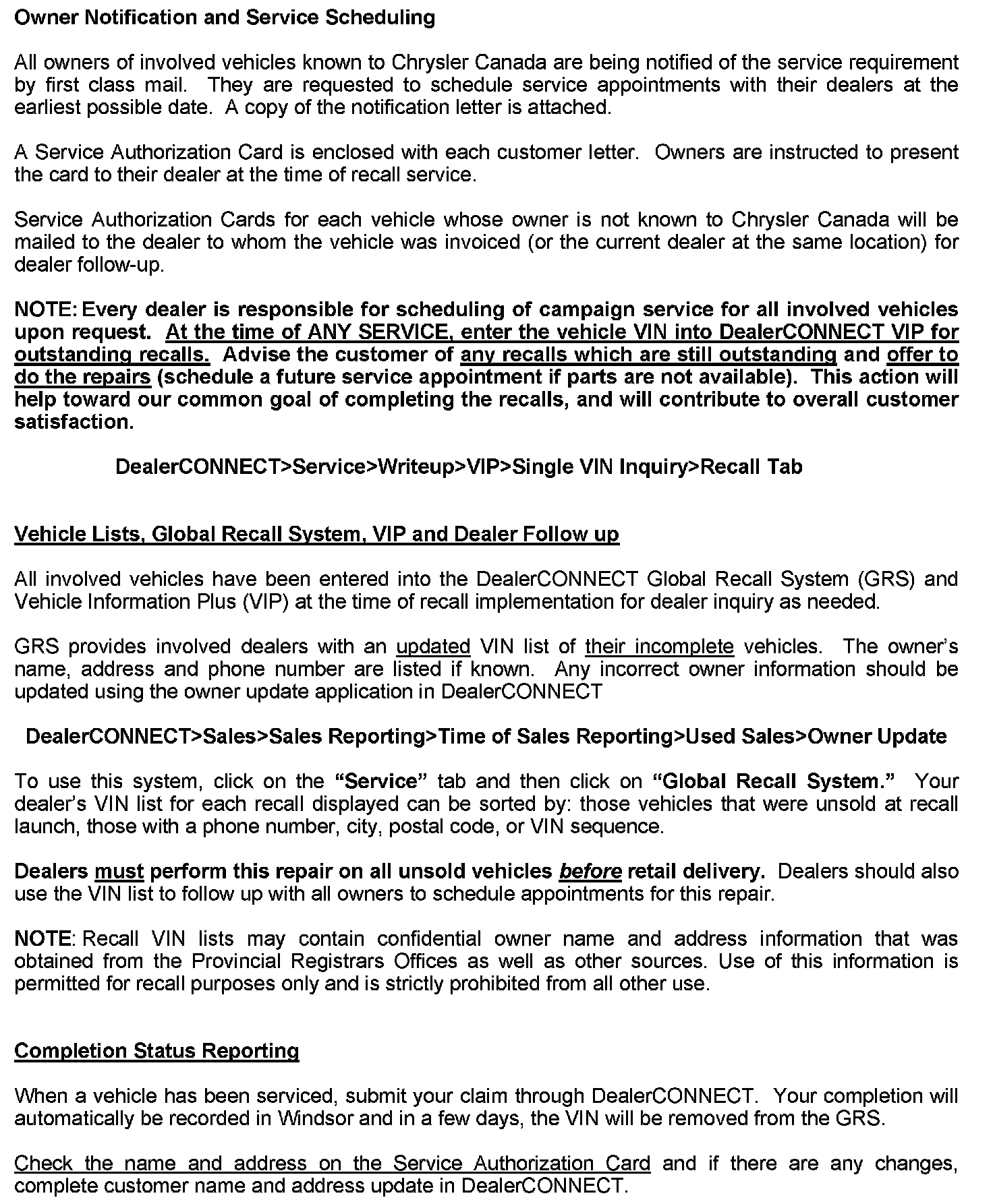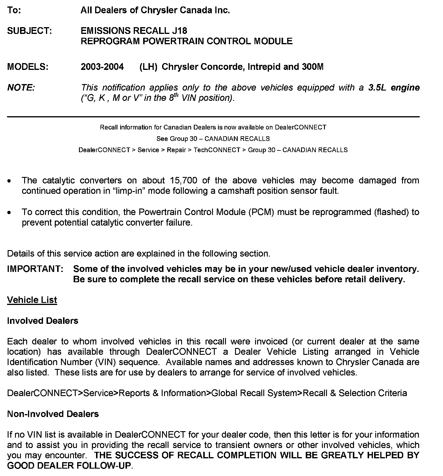 This Canadian Recall Notification can also be found in DealerCONNECT - See below: