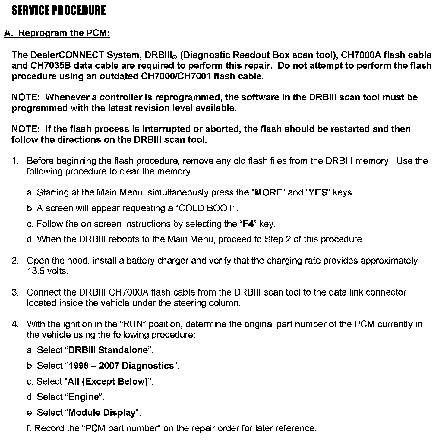 ^ To correct this condition, the Powertrain Control Module (PCM) must be reprogrammed (flashed) to prevent potential catalytic converter failure.