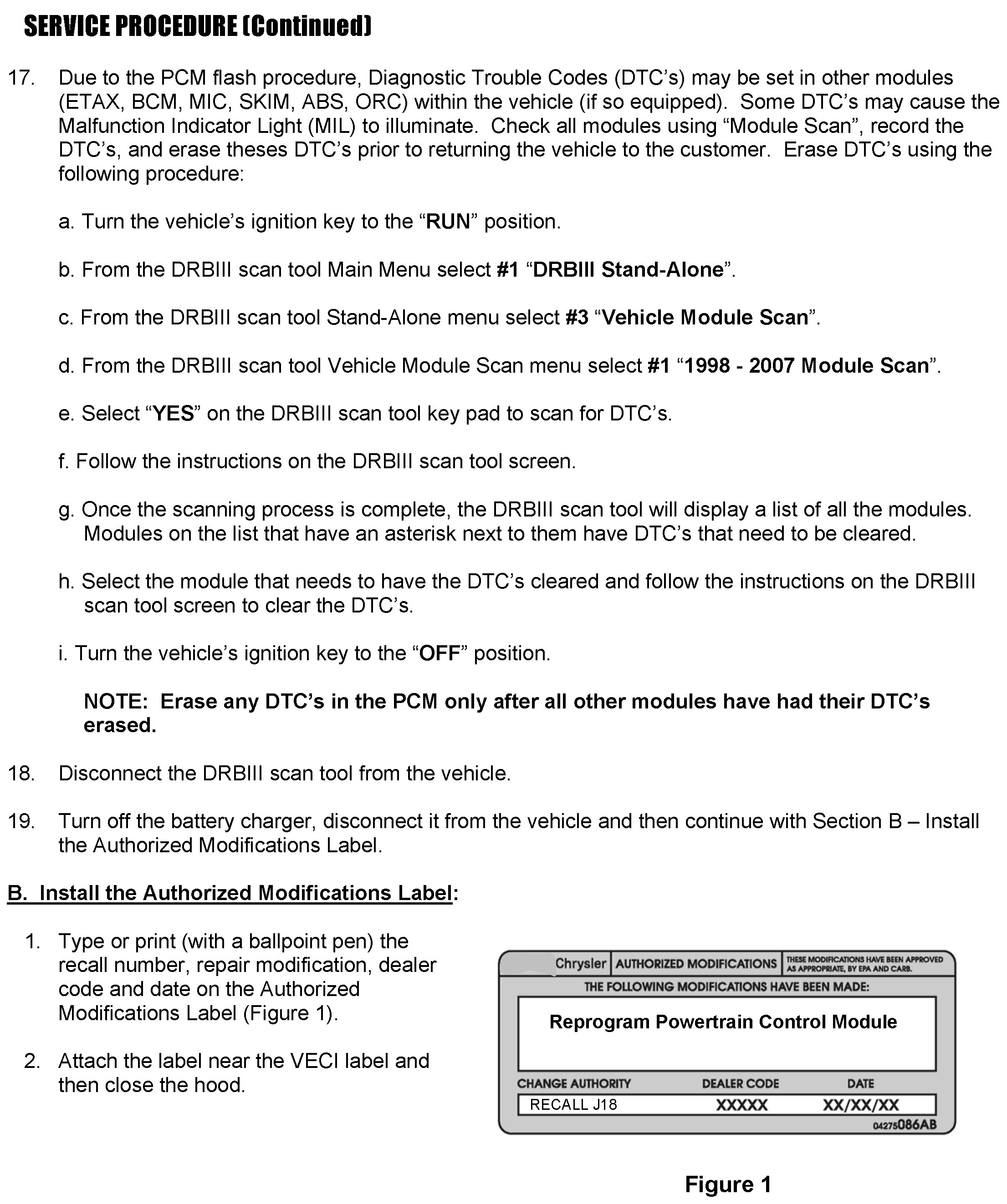 EMISSIONS RECALL J18 REPROGRAM POWERTRAIN CONTROL MODULE
