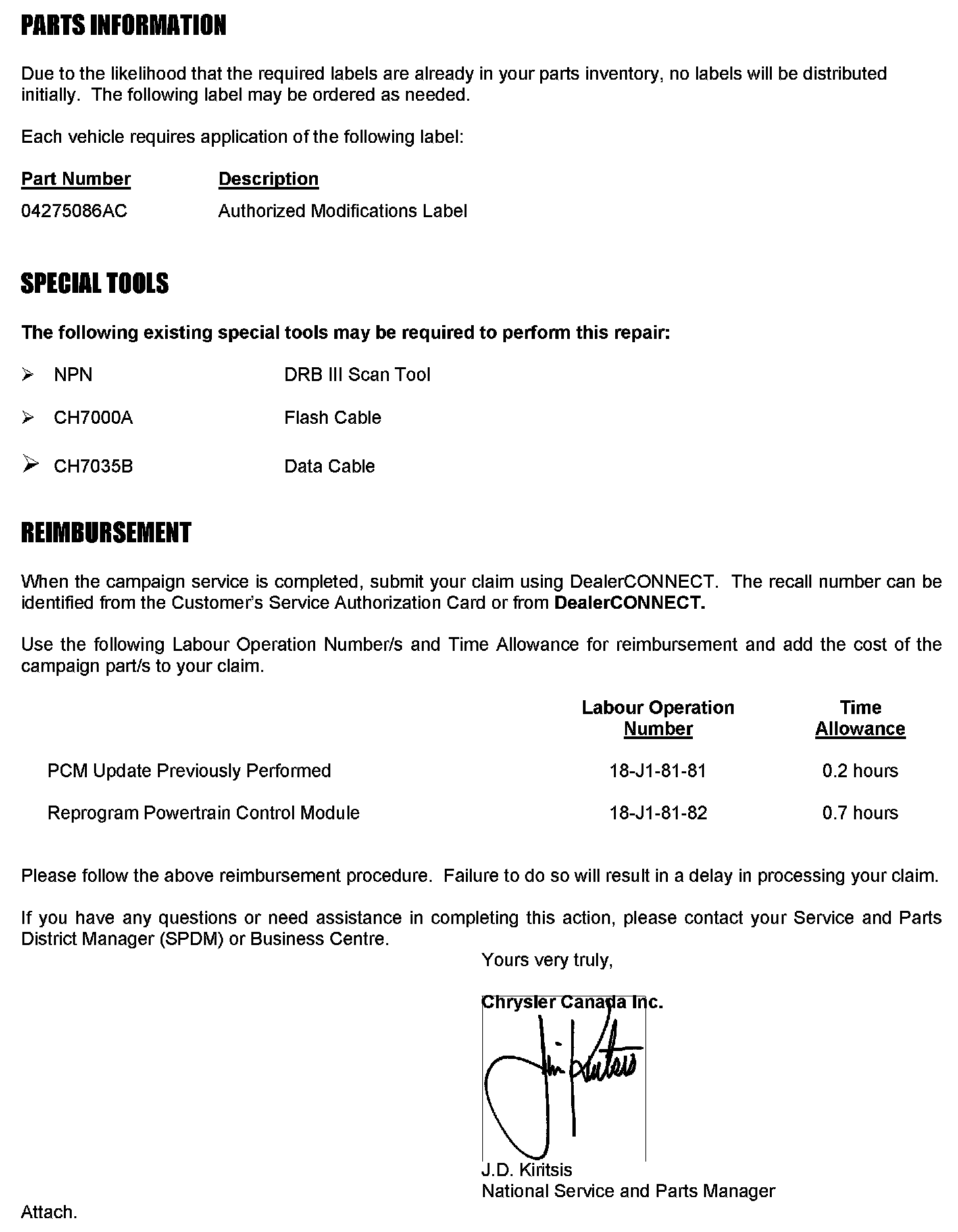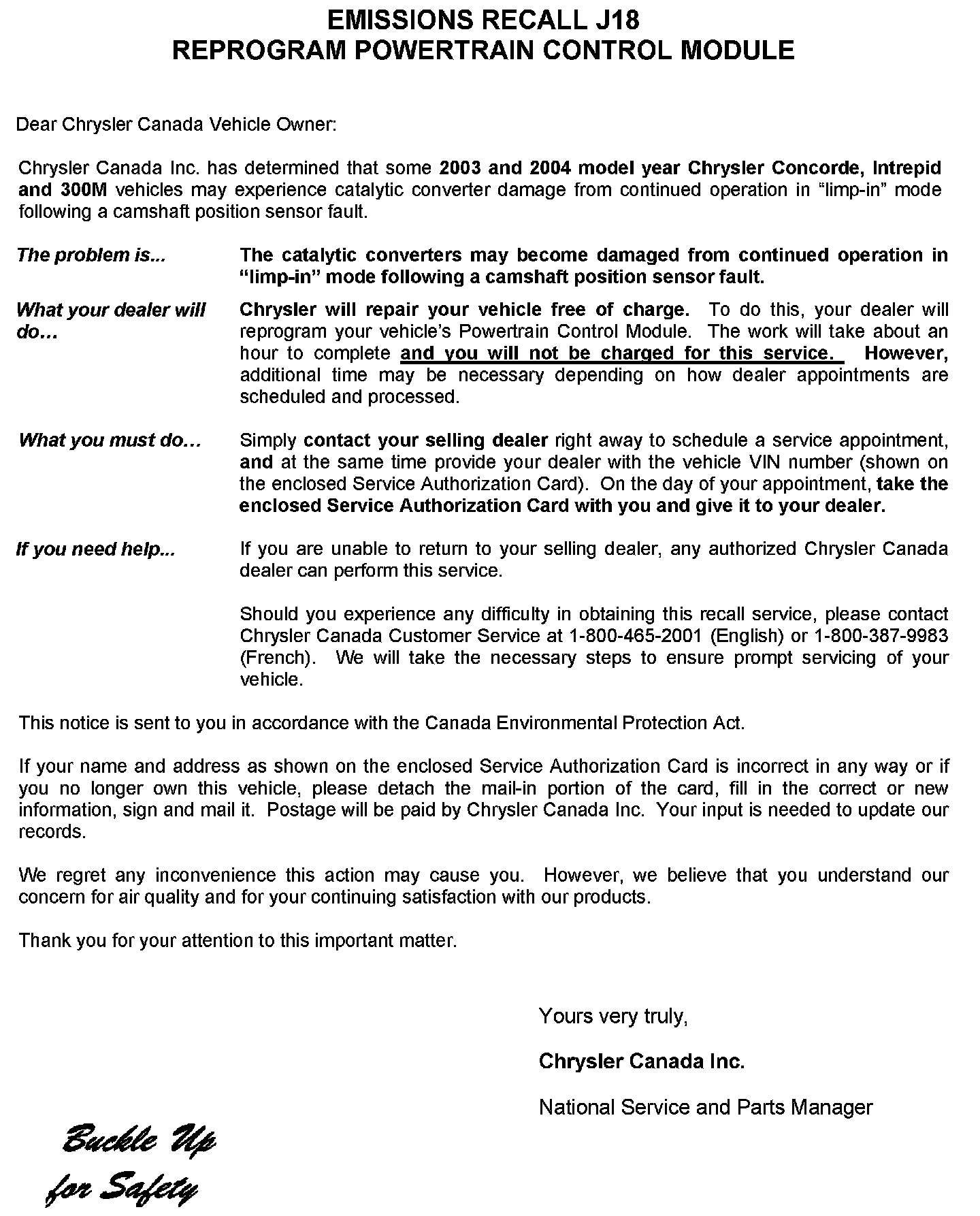 Canada - Campaign - J18 PCM Update For Cat Converter Durabilit