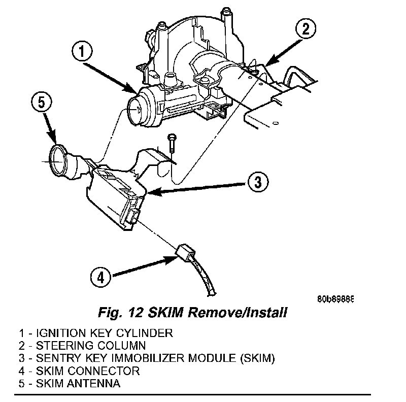 1. If the SKIM is replaced with a new unit, a DRBIII scan tool MUST be used to initialize the new SKIM and to program at least two Sentry Key transponders. Sentry Key Immobilizer Module Initialization.