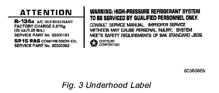 R-134a refrigerant requires a special type of compressor oil. When adding oil, make sure that it is designed to be used in a R-134a system. Refer to the label under the hood for proper oil and refrigerant charge levels.