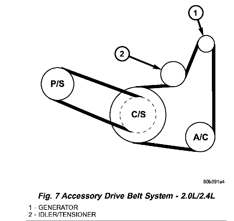 REMOVAL- 2.0L/2.4LAIR CONDITIONING COMPRESSOR/GENERATOR BELT