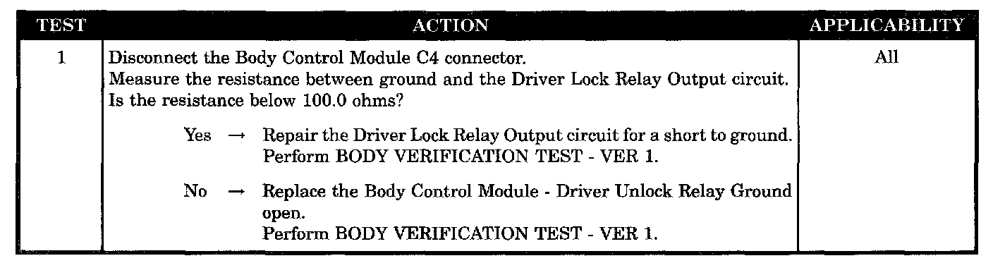 DRIVER DOOR FAILS TO LOCK FROM ANY SWITCH