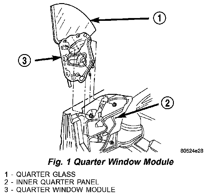 5. Remove fasteners holding quarter window module to inner quarter panel (Fig. 1).