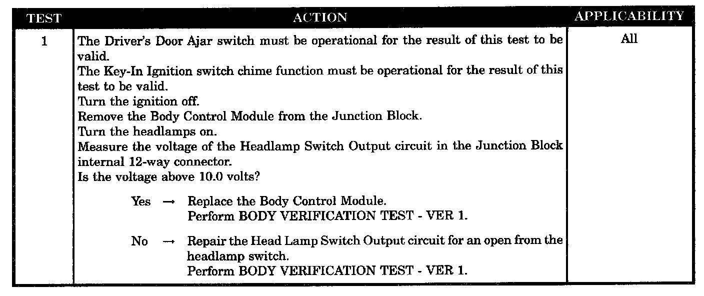 CHIME INOPERATIVE WITH EXTERIOR LIGHTS ON AND DRIVERS DOOR OPEN