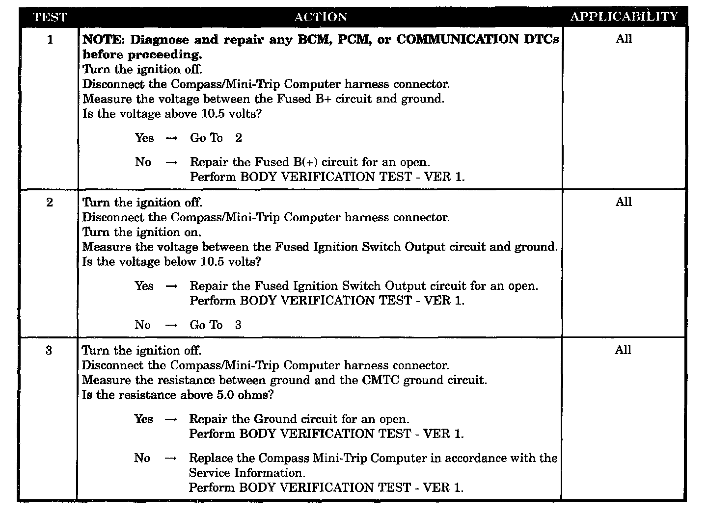 COMPASS/MINI-TRIP COMPUTER INOPERATIVE
