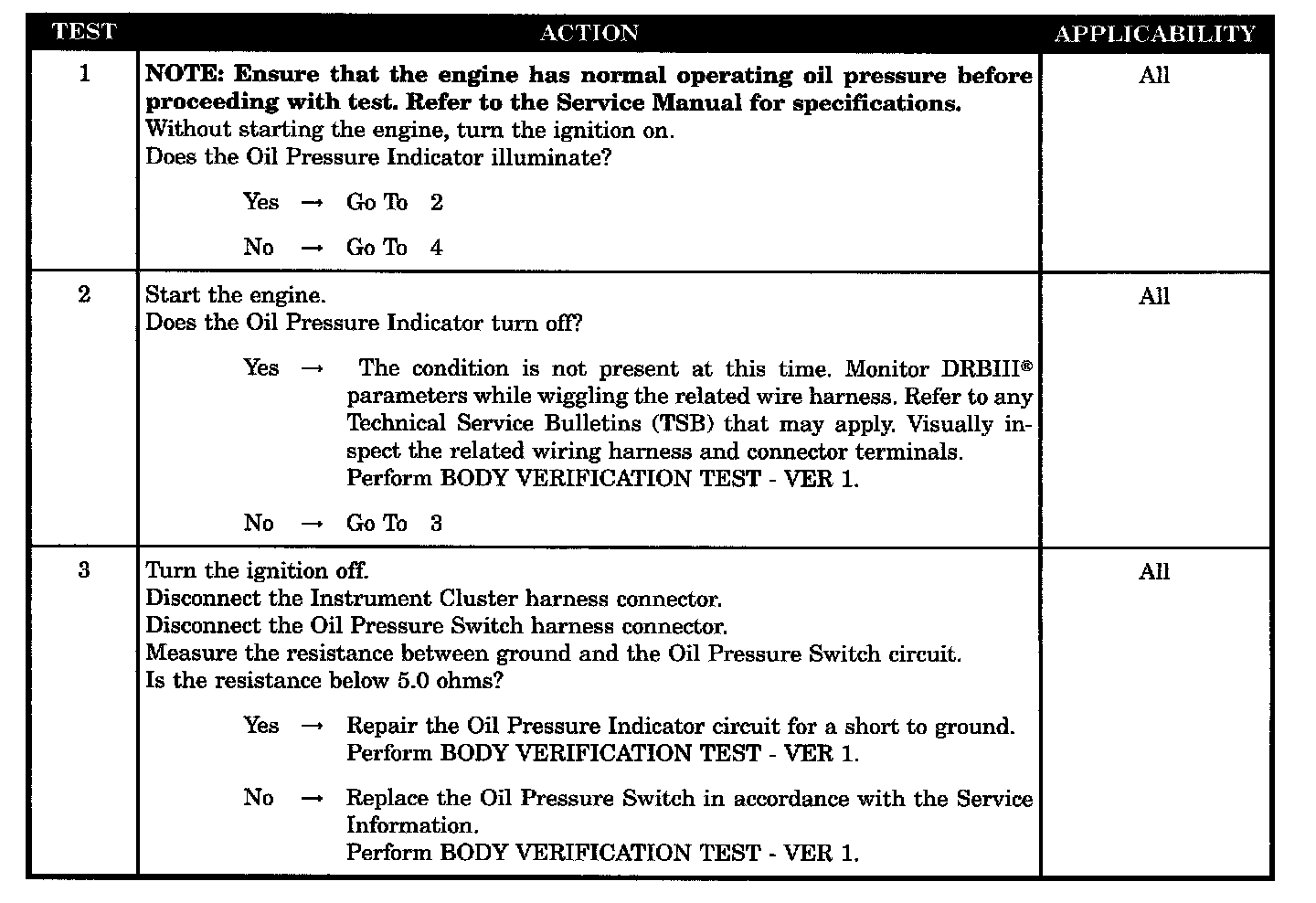 OIL PRESSURE INDICATOR NOT OPERATING PROPERLY