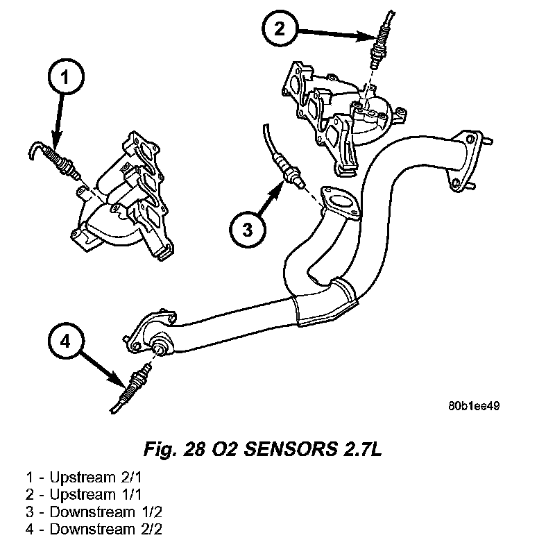 The engines uses two heated oxygen sensors, one in each exhaust manifold.