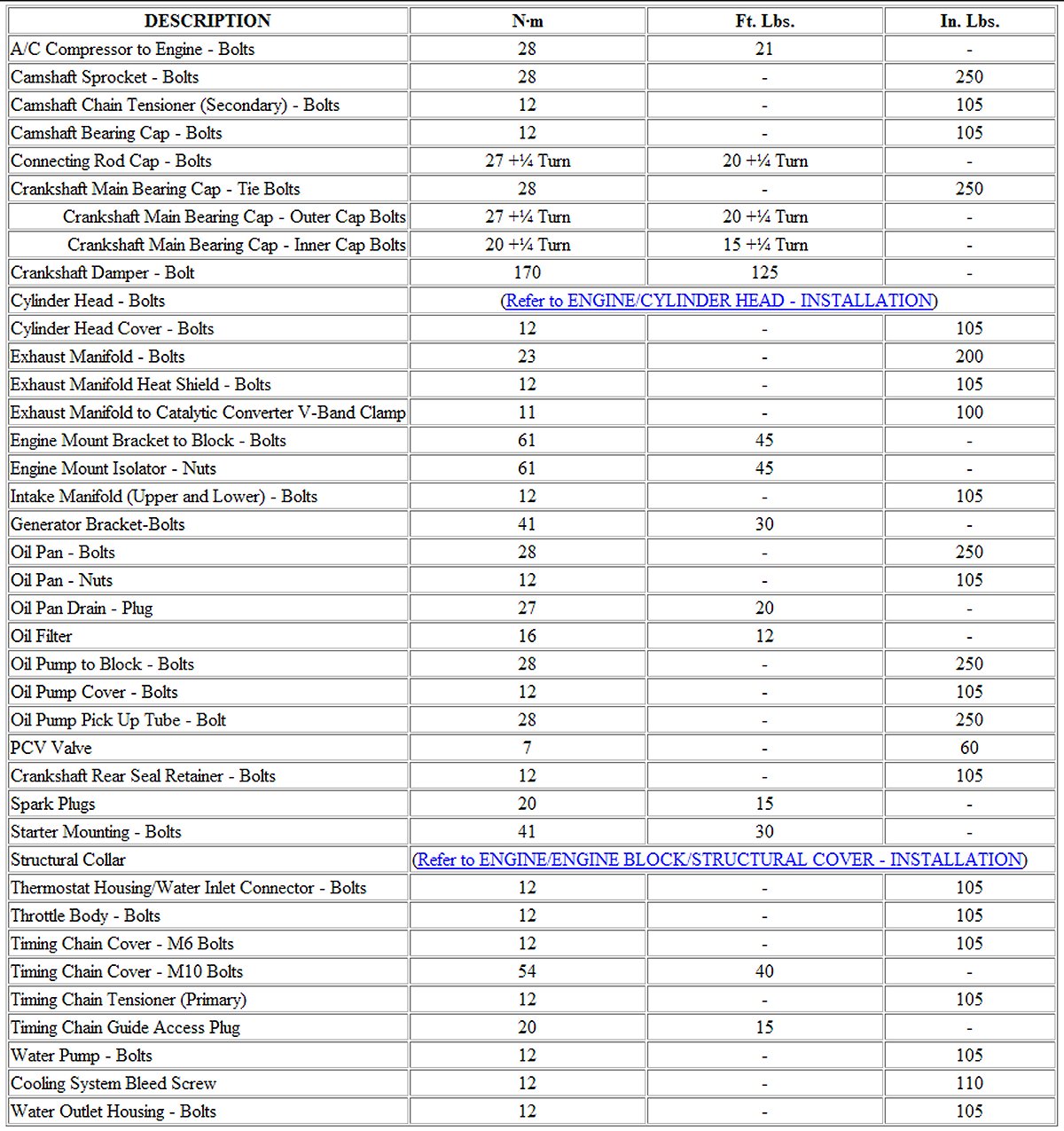 Engine Torque Specifications