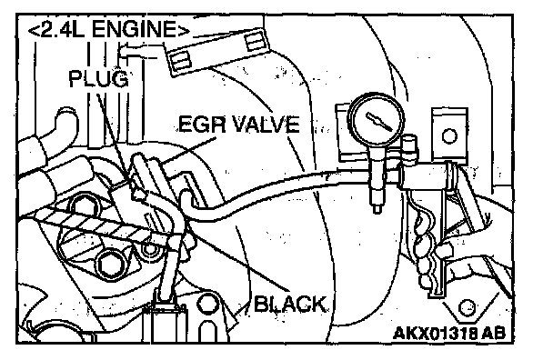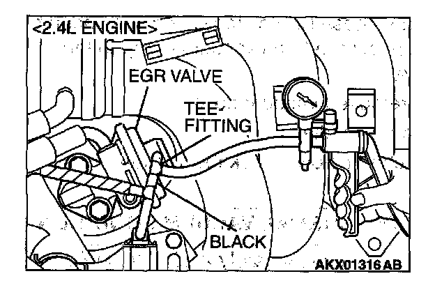 1. Disconnect the vacuum hose (black) from the EGR valve, and then connect a hand vacuum pump via the Tee-fitting.