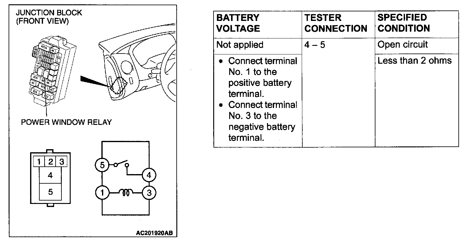 Power Window Relay: Testing and Inspection