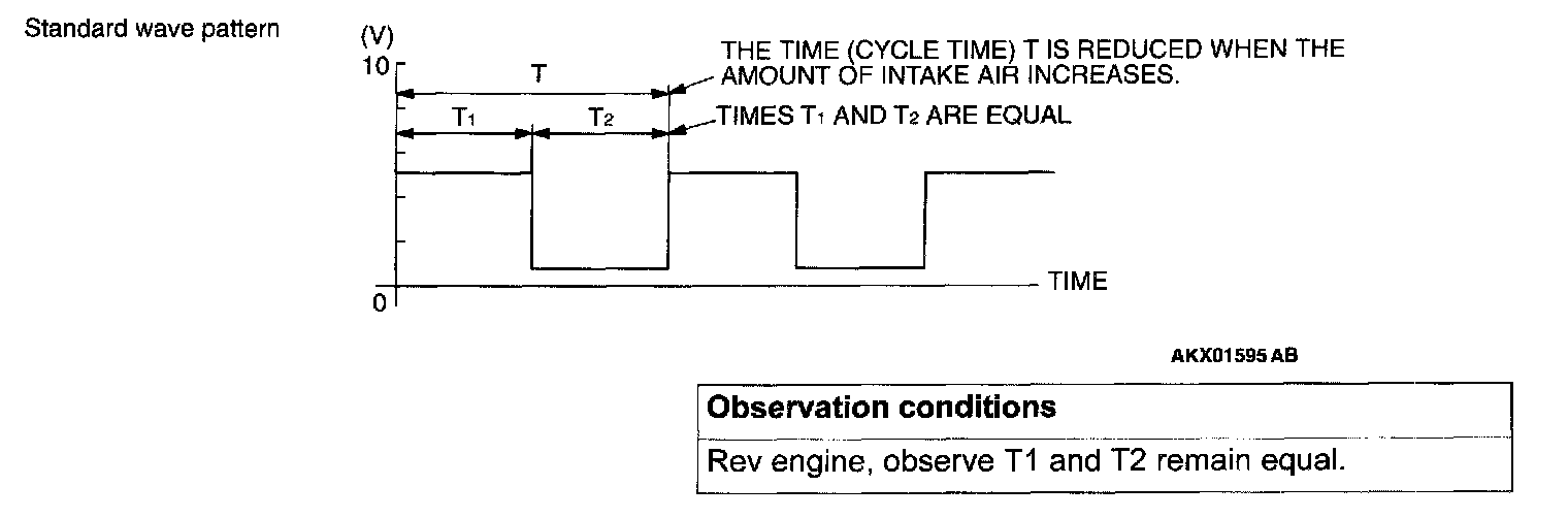 1. Check that cycle time T becomes shorter and the frequency increases when the engine speed is increased.